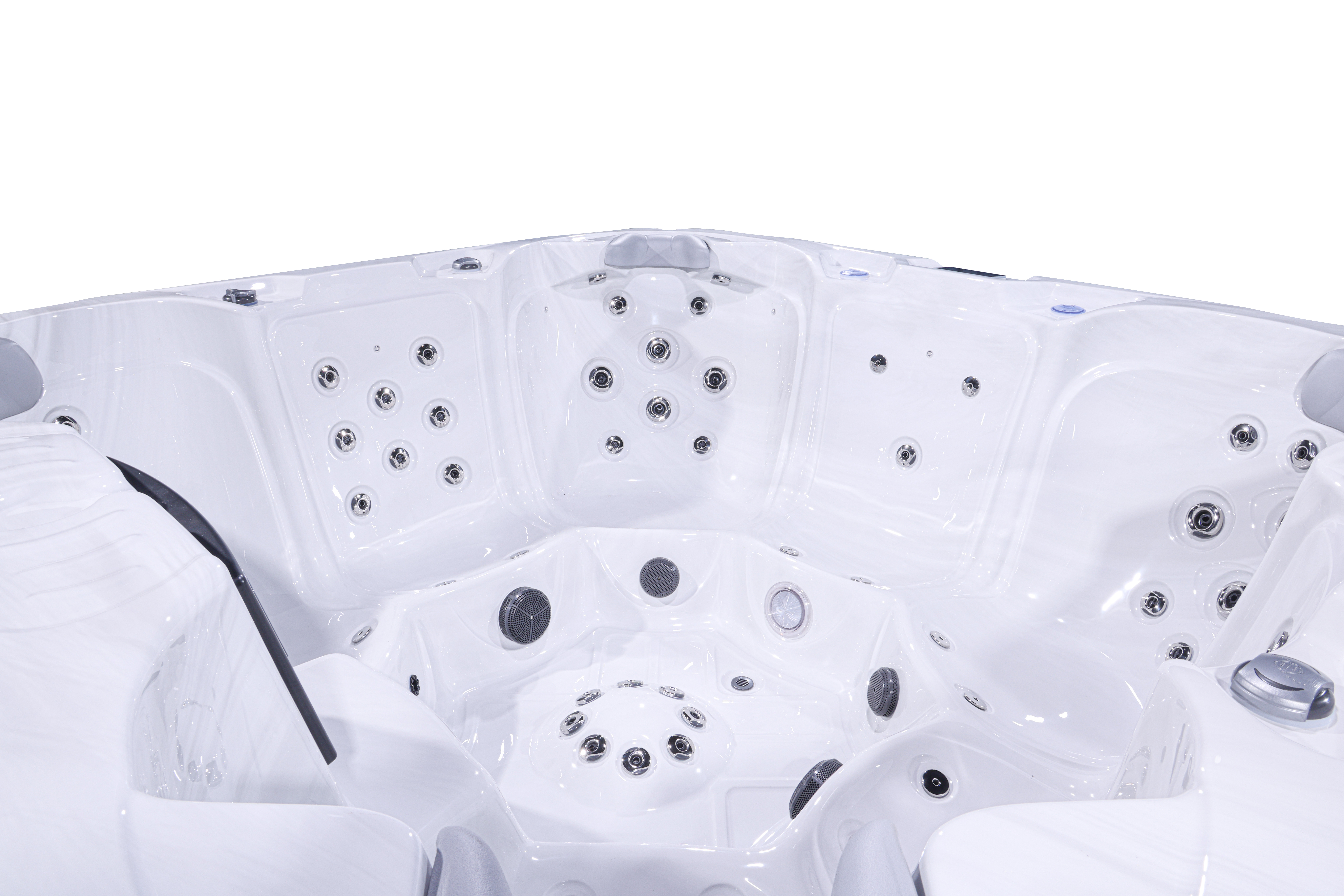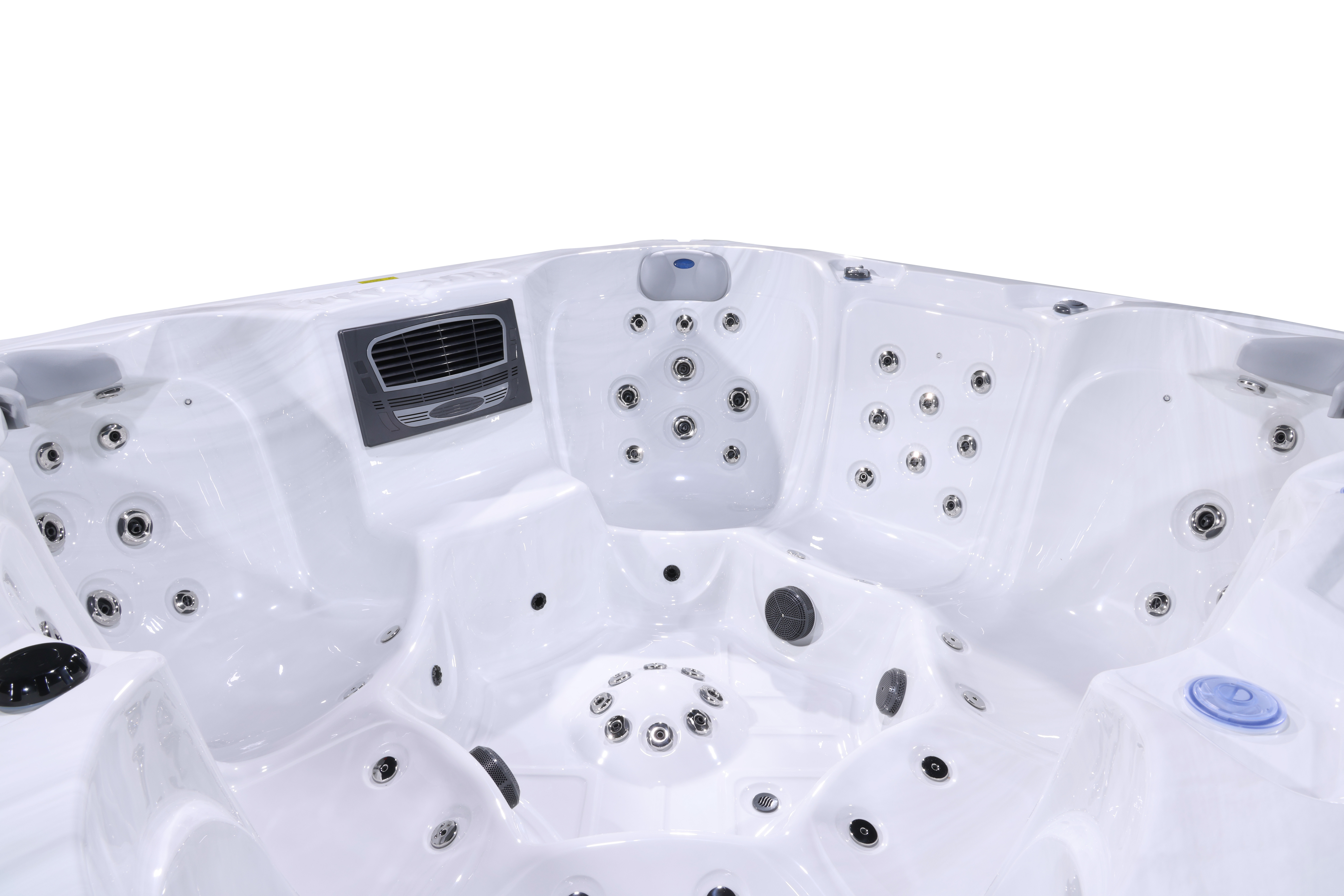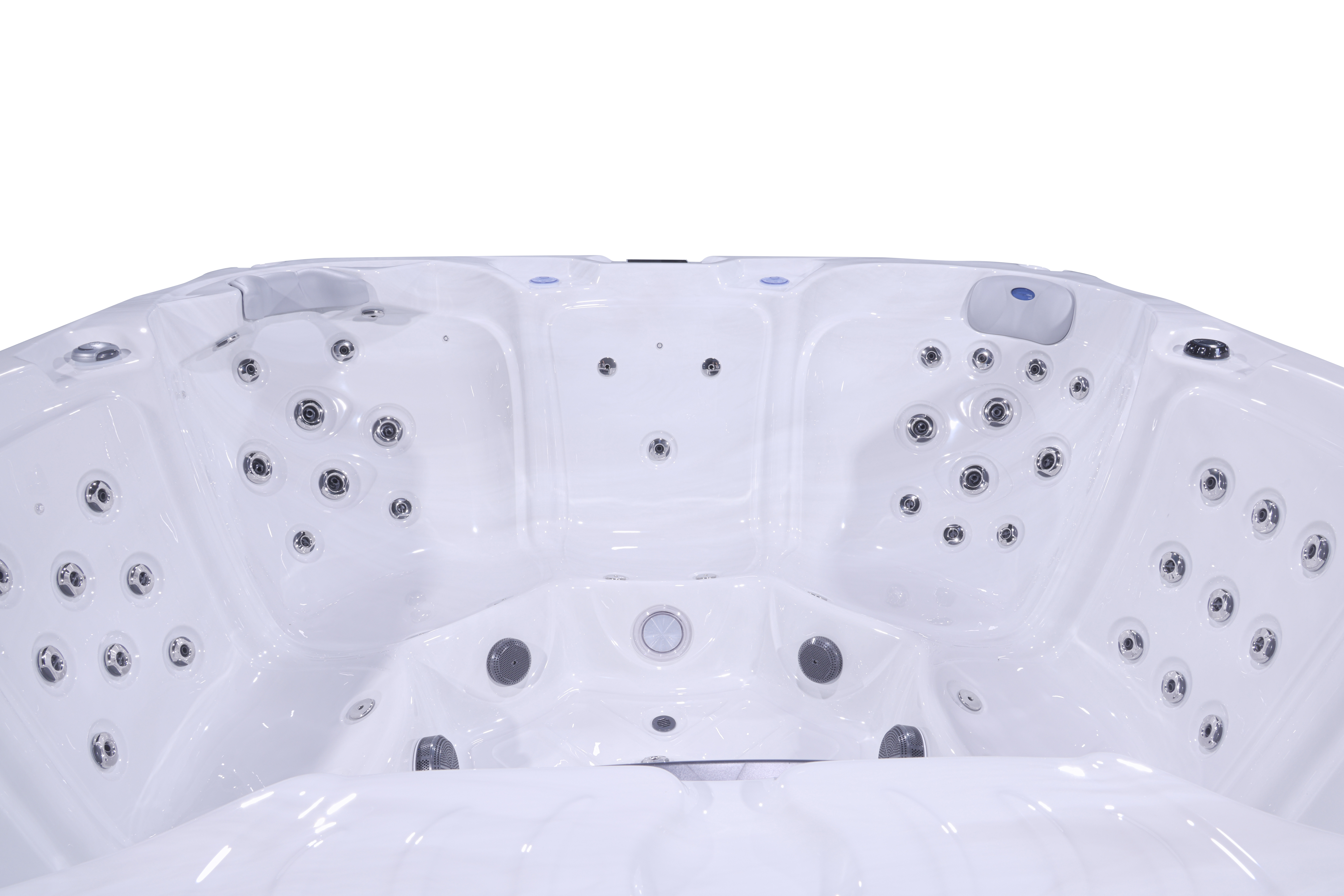 Khild - это вершина инженерной мысли с безупречной эргономикой и самой мощной системой гидромассажа в линейке. 73 воздушно-водяные форсунки обеспечивают непревзойденный комфорт и эффективное расслабление всех групп мышц. Опциональные аэро-форсунки (14 шт.) дополнят ваш опыт нежным воздушным массажем, создавая идеальные условия для многоуровневого релакса. Два мощных водяных насоса по 2,2 кВт каждый гарантируют интенсивный и равномерный массаж одновременно для всех гостей.