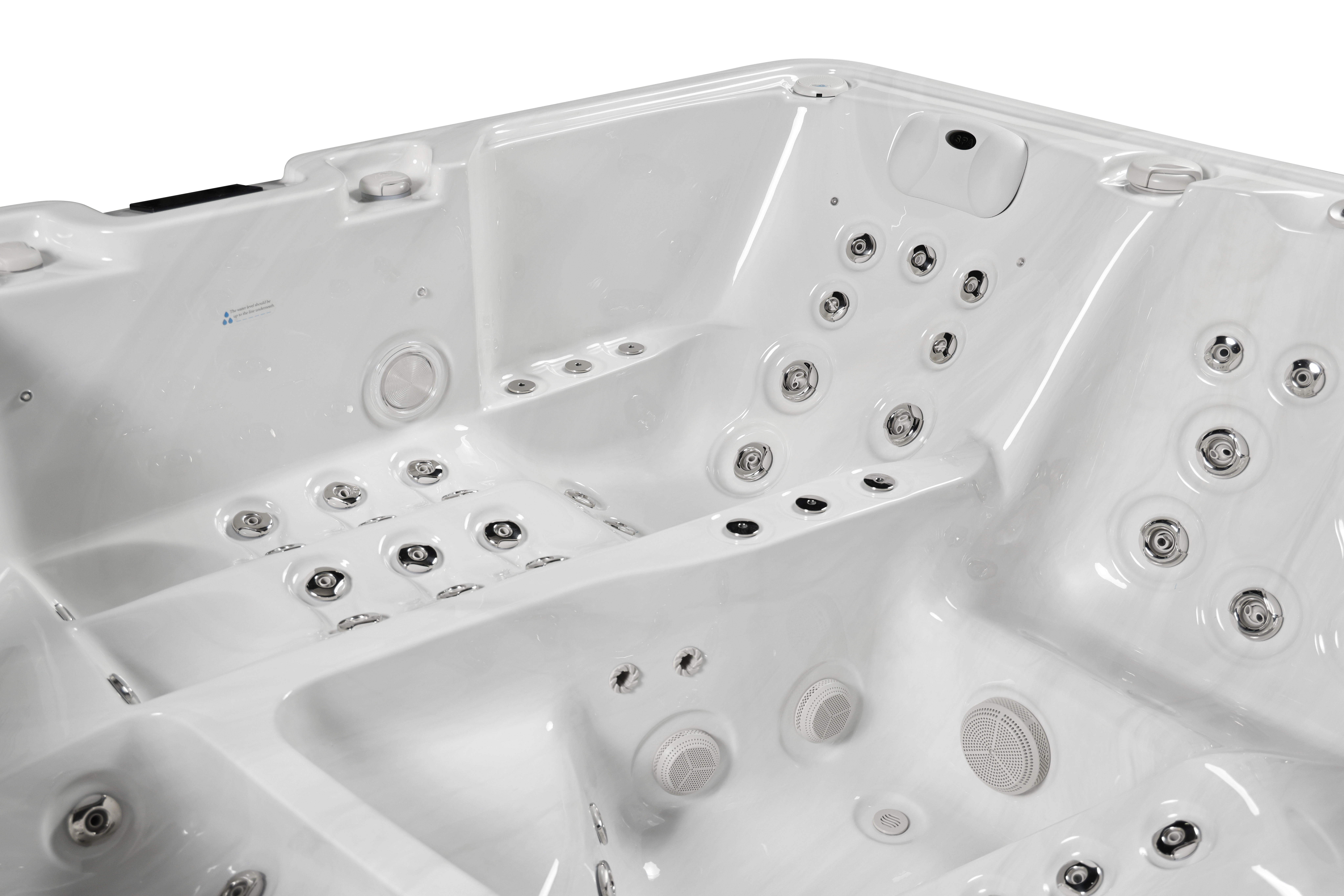 NordicSpa Tyur с размером чаши 2,25 x 2,25 м идеально подходит для установки как в помещении, так и на улице. Просторная квадратная чаша с тремя эргономичными подголовниками комфортно вмещает до пяти человек, создавая королевские условия для полноценного отдыха и общения.