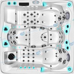 Гидромассажный СПА Premium Leisure обладает гладкой, не имеющей острых углов, конструкцией. Благодаря этому использование бассейна становится совершенно безопасным. Системы фильтрации, подогрева и все остальное оборудование компактно смонтировано под чашей бассейна, что предотвращает его переохлаждение и обеспечивает дополнительный обогрев воды. Компактный спа бассейн прекрасно впишется, как в ландшафтный дизайн приусадебного участка, так и в интерьер помещения.