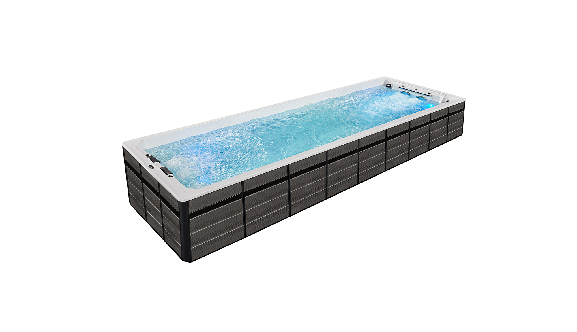 - Размеры: 9950 × 3000 × 1430 мм (длина × ширина × высота) - просторная чаша, позволяющая комфортно плавать и отдыхать