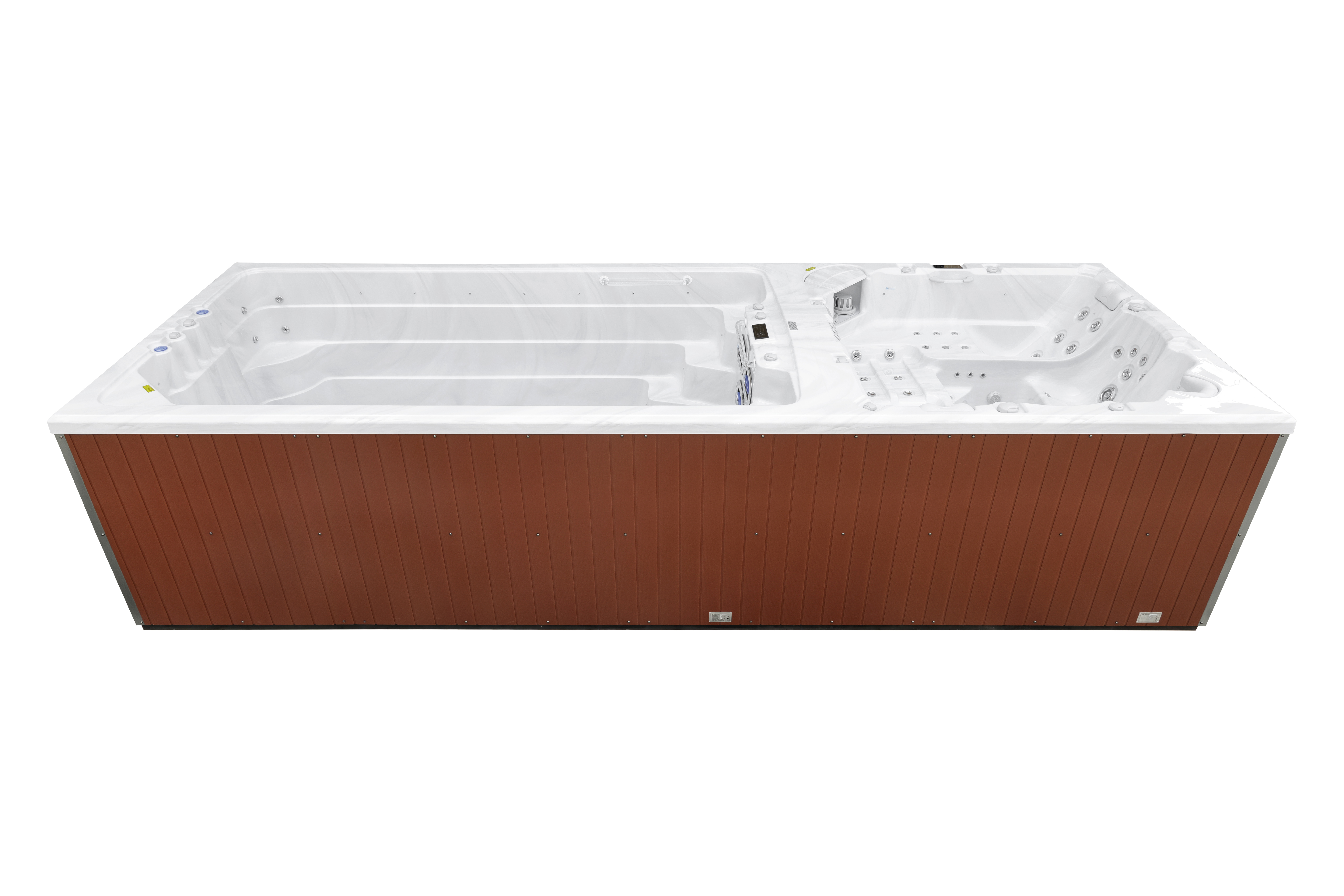 Kroford устанавливает новые стандарты с впечатляющими размерами 6,37 x 2,25 м и глубиной 147 см. Просторная чаша обеспечивает высокий уровень комфорта для одновременного отдыха большой компании и создания идеальных условий для релаксации и плавания.
